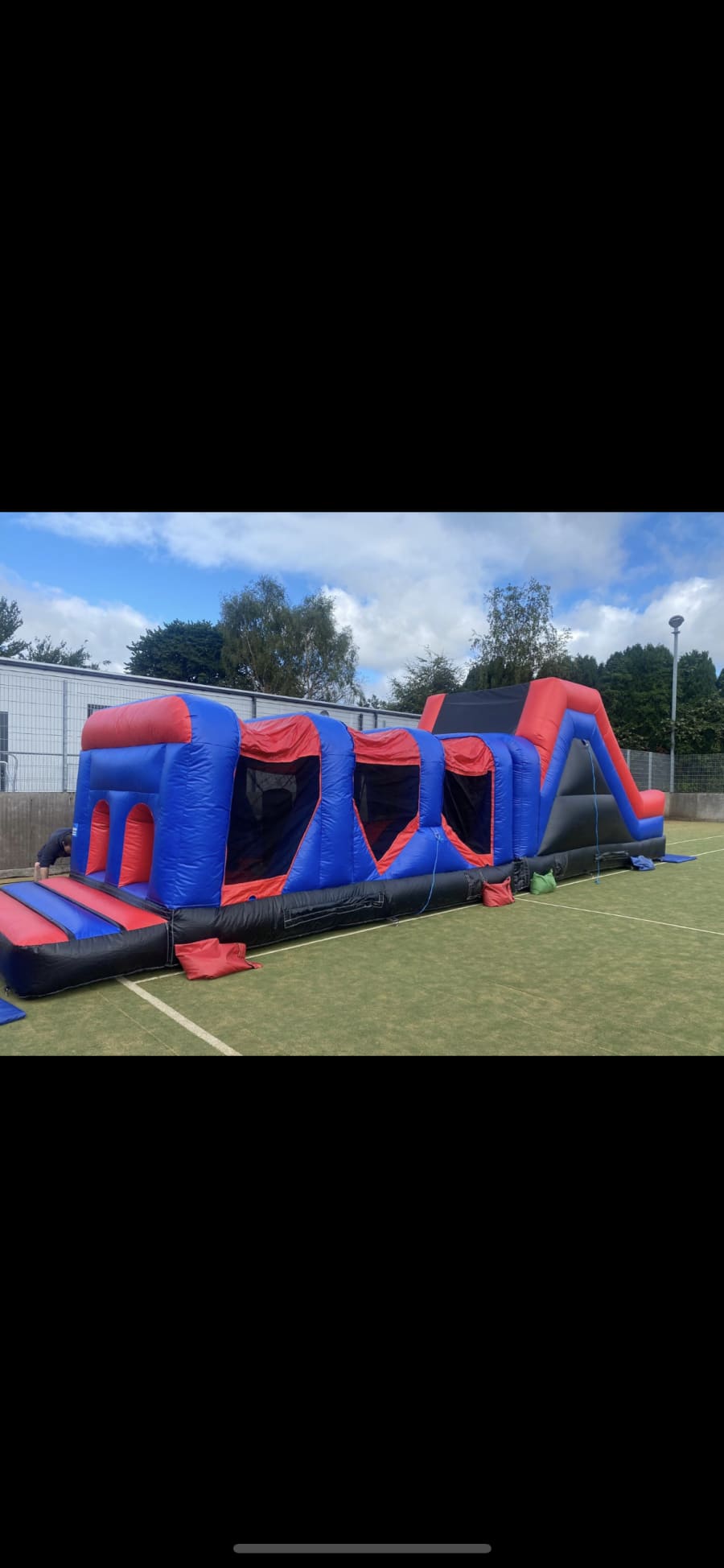 The new 42ft enclosed assault course is quickly becoming our most popular unit it has it all it has obstacles & bashers Fun tunnels and a great slide. The best part of this unit is it is fully enclosed it keeps the kids in and the rain out